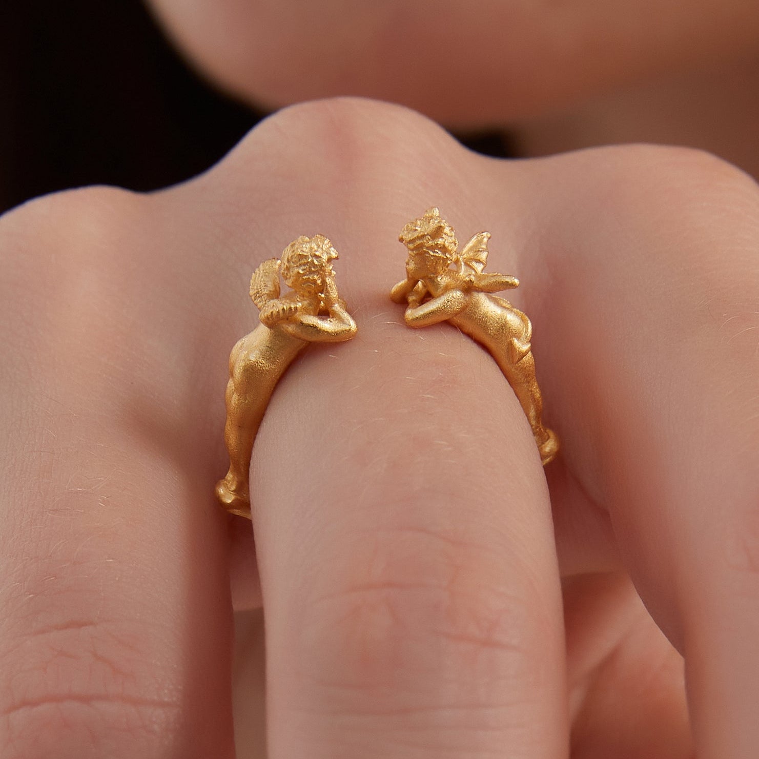 Retro Angel & Devil Rings: Gold Cherub Statement Jewelry